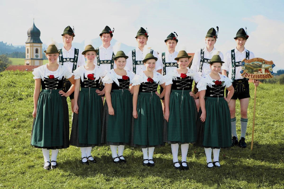 Einer einheitliche Trachtenordnung für die Petersthaler Trachtlerinnen und Trachtler mit Festlegung der Schultertuchgestaltung bei den Föhla und der Birkhahnstoß beim Hutschmuck der Buabe , sowie eine Marschordnung bei kirchlichen und weltlichen Feiern wurde am 1. Mai 1934 beschlossen.